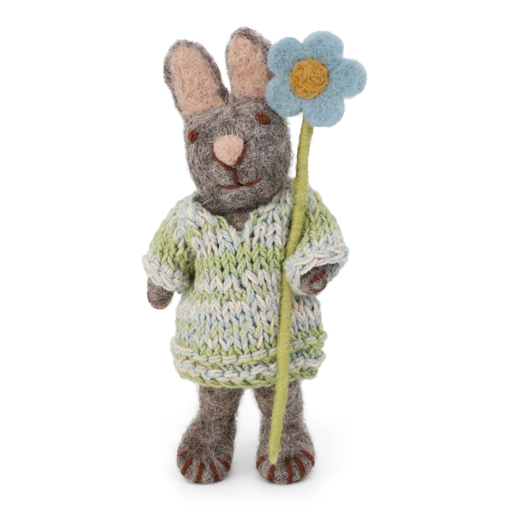 Handtovad Kanin vit - Tjej med blå klänning/rosa och blomma